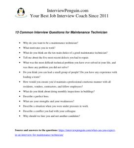 Read Online Facilities Maintenance Technician Interview Questions And Answers Doc