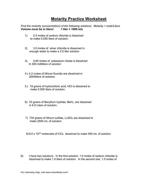 Read Online Molarity Worksheet Answers Epub